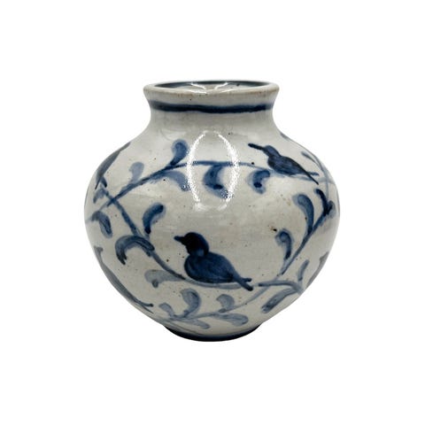 Keramik, Vase fra L. Hjorts værksted, på Bornholm. Designet af Erik Hjort i 1950. Sjælden og flot vase uden skår eller afskalninger. Vasen måler 13 cm i højden og har en diameter på 7,5 cm. Sælges for