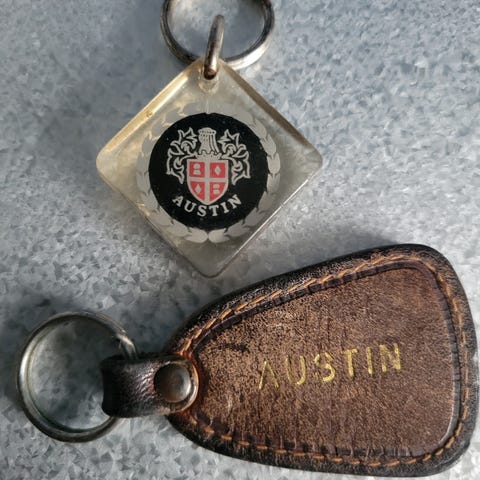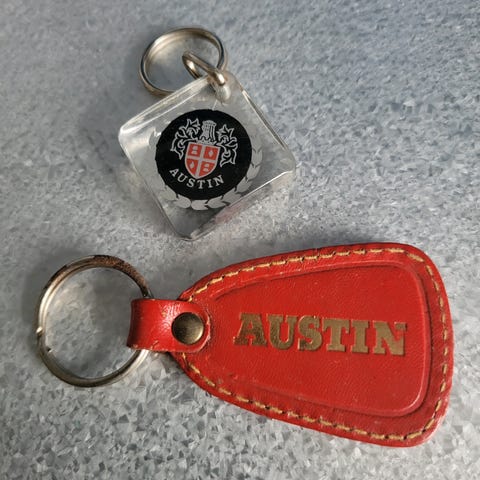 2 vintage nøgleringe fra Morris i Silkeborg ved Folmar Th. Hansen.
