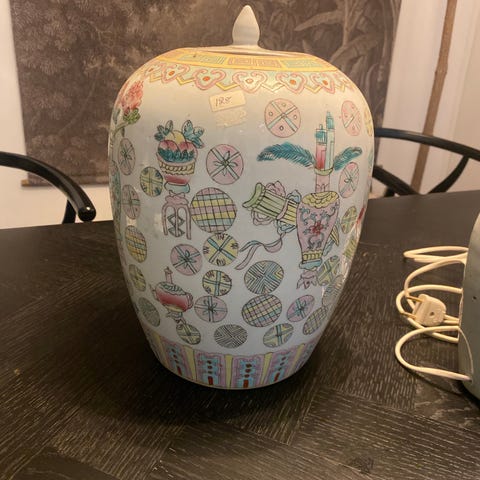 Orientalske porcelæns krukker med låg og flotte dekorationer