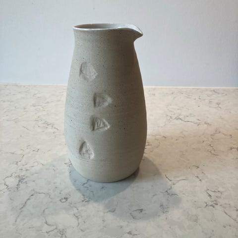 Aldrig brugt. H: 20cm Ø 13cm B med hank: 22cm