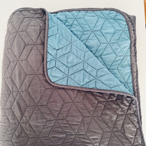 Smukt sengetæppe kun brugt til fotografering og fremvisning i forbindelse med hussalg.