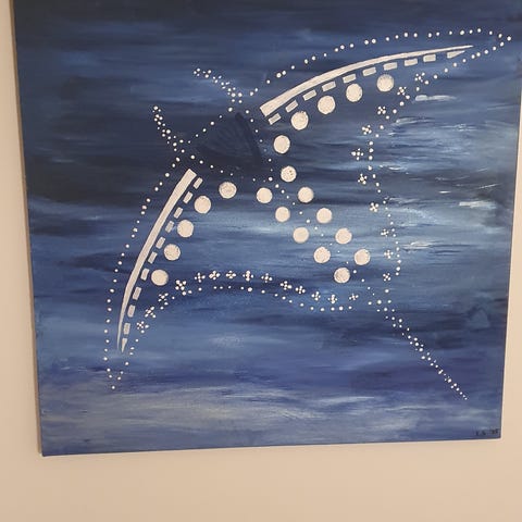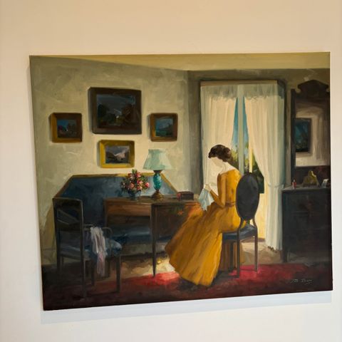 Materiale er olie på lærred og har fine klare farver. Maleriet hedder Rokke og der er påmalet passepartout ramme.