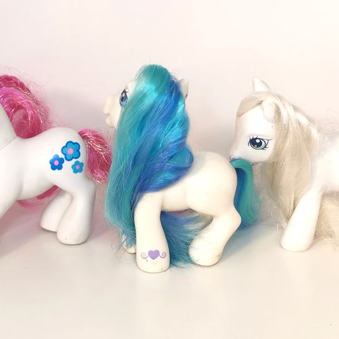 My Little pony, nogle har lidt kruset hår, da der er leget med dem. 20 kr. pr. stk. Eller alle for 100 kr. Sender ved køb af min. 2 stk.