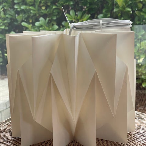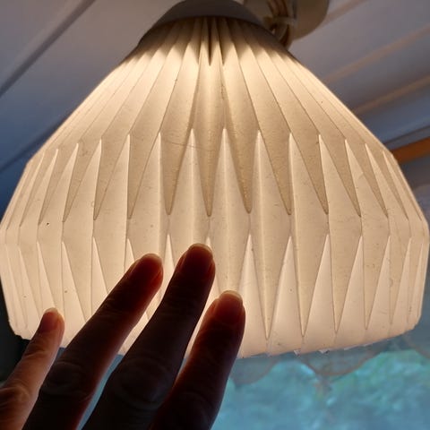 Trænger til rengøring, har lidt maling på og lidt skader/ brud. Ikke længere helt hvid.