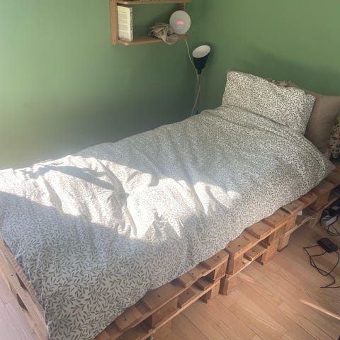 Madrassen er brugt til en hyggekrog indendørs og er som ny. Madrassen er i tykt slidstærkt stof.