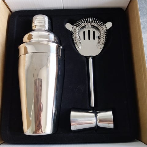 Den indeholder en indsats til otte flasker/dåser, to krus til snacks, et køleelement og en kapselåbner.