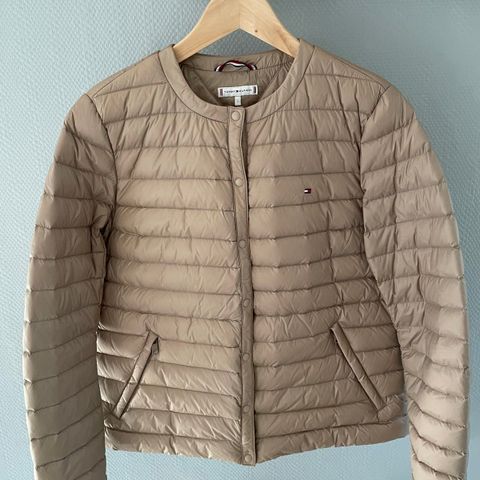 Tommy Hilfiger dun Jakke str s lækker jakke har flere lommer og en hætte for funktionalitet og komfort.