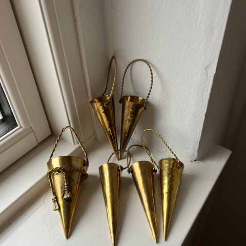 Julepynt i messing formet som kræmmerhus