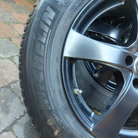Flot grå fælge med slidte sommerdæk brugt i 3-4 sæsoner brugt til en Tiguan airline