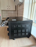 Albaline Varmluft miniovn i sort farve med varmluftfunktion.