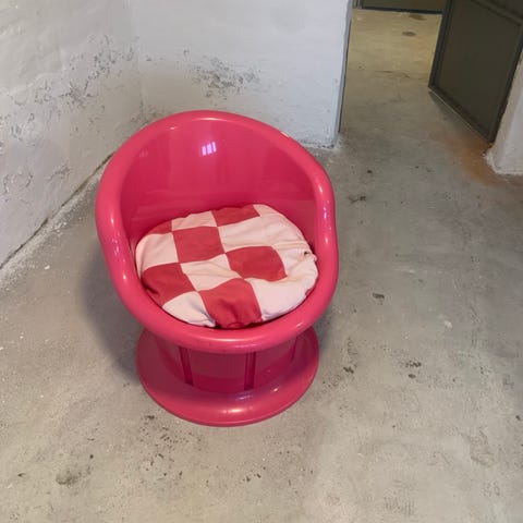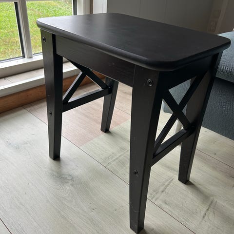 Stolen god at sidde ind. Giv den en evt en ny flot farve, for den trænger til en gang maling/ny lak.