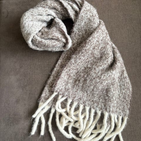 Flot og varmt mørkegrøn/khaki halstørklæde 70% alpaka 20% wool brugt få gange.