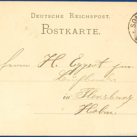 Helsagsbrevkort med skarpt tysk brotypestempel Augustenburg 6.5.1908 til bestyrelsen for Sønderborg Yacht-Club, Hotel ”Prinz Adalbert” (som lå i Helgolandsgade), Sønderborg.