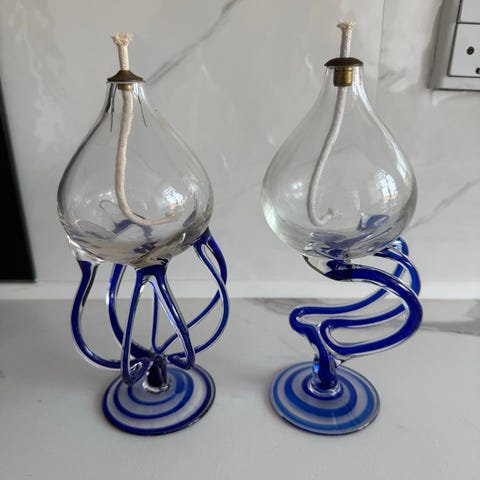 Antikke kinesiske olie lamper fra Green Square i jern. Jeg har brugt dem til store fyrfadslys. Den lille er 23 cm høj og den store 31 cm. Sælges samlet og prisen er for begge. Kostede oprindeligt 3000 kr.