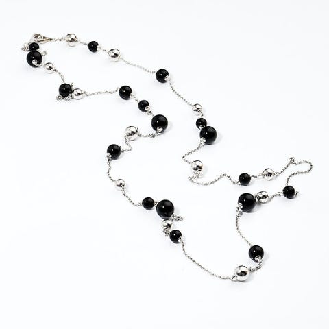 Smuk dobbelthalskæde i sølv med ferskvandsperler og sort agat. Brugt få gange. Nypris 4950 kr.