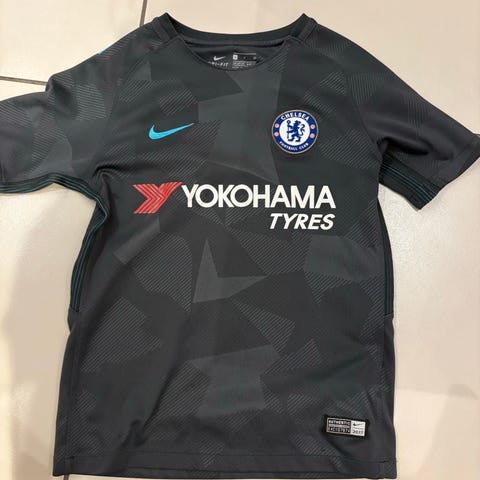 Nike Chelsea fodboldtrøje (opvarmningstrøje) i blå farve, størrelse M. Fremstillet i Dri-FIT materiale, som hjælper med at holde huden tør under aktivitet. Trøjen har Chelsea Football Club-logo på brystet. Trøjen er ikke original