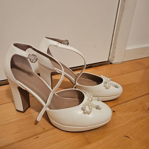 Brugte konfirmations sko (mærket er Graceland) med 5 cm hæl i str. 39 - de ser ud som om det har været brugt, men ikke mere brugte end jeg tror de kan bruges igen