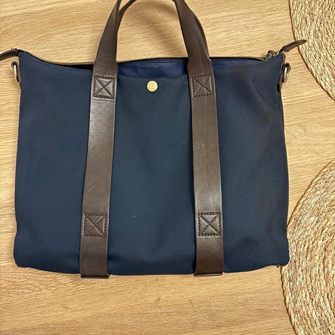 - Stribet bomuld-nylon-inderside med læderdetaljer.