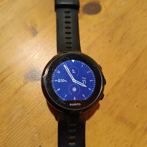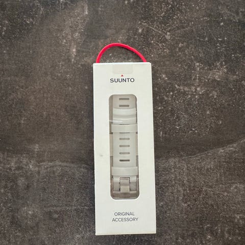 Suunto Ambit2. Uret har flere funktioner til sport og udendørs aktiviteter, herunder tidtagning og navigation. Remmen er lavet af flettet materiale og har en metalspænde. Uret er fremstillet i Finland og har en robust konstruktion.
