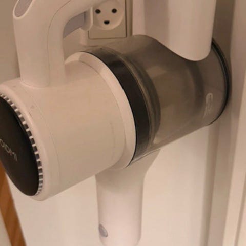 LadeStander med indbygget støv spand med pose i og sug der tømmer støvsugeren. Automatisk lys, 3 mundstykker et med roterende linned børster som ny. Er fra april 2025