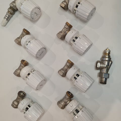 Danfoss radiatorventil sæt bestående af to ventiler i metal med gevindtilslutning. Ventilerne er beregnet til brug på radiatorer til regulering af varme. Materialet er robust metal, og de har en traditionel design med en drejeknap til justering af flow. Sættet indeholder to ventiler med forskellige retninger af tilslutning inkl pakdåse