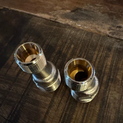 Sæt bestående af VVS tilslutningsdele med forskellige gevindstørrelser, fremstillet i metal og med kromfinish. Delene inkluderer vinkelformede fittings og gevindadaptere, eks. Bruser. velegnet til installation i vand- og varmesystemer. Produkterne er udelukkende til teknisk brug i VVS-installationer.