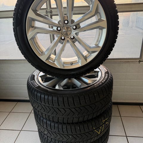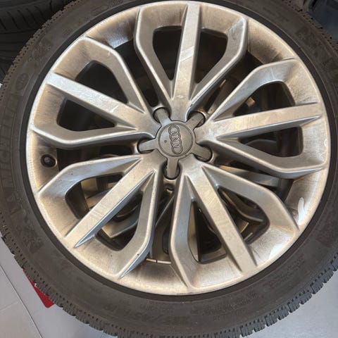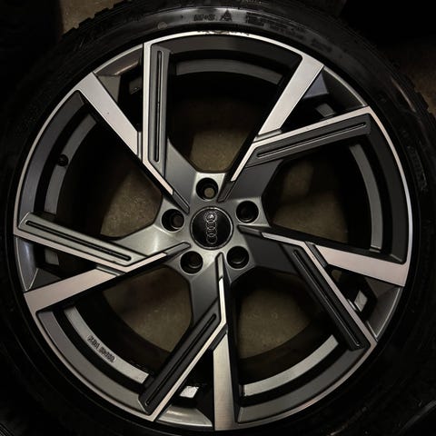 Måske originale Audi alufælge 19" monteret med 3 forskellige mærker (Continental, Michelin og Kleber) vinterdæk 255/40 R19 100V (M+S) med sandsynligvis med TPMS/RDK-ventiler til dæktryksovervågning.