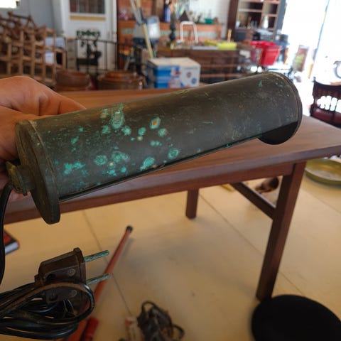 Rustik vægæampe, lavet af trørn og egetræ med en naturlig, uregelmæssig form. Lampen har en indbygget lyskilde, der skaber et varmt og diffust lys gennem træets åbninger. Passer til indendørs brug som dekorativ belysning.