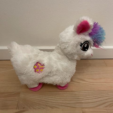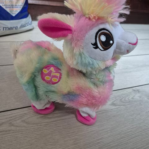 Sæd hund fra pets alive. Den kan gå og ryste med numsen.