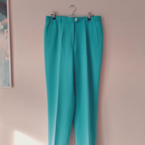 Vintage bukser fra Cero of Denmark. Flødefarvede med brune læderlook detaljer i siderne. Indsnit hele vejen rundt, lukkes foran med knap og lynlås. Måler 38 cm (x2) i taljen.
