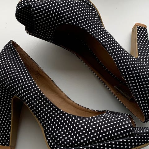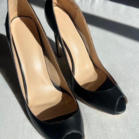 Lækre klassiske peeptoe stilletter fra Ivory, med fine læg der smyger sig om forfoden og et halvmåneformet similispænde.