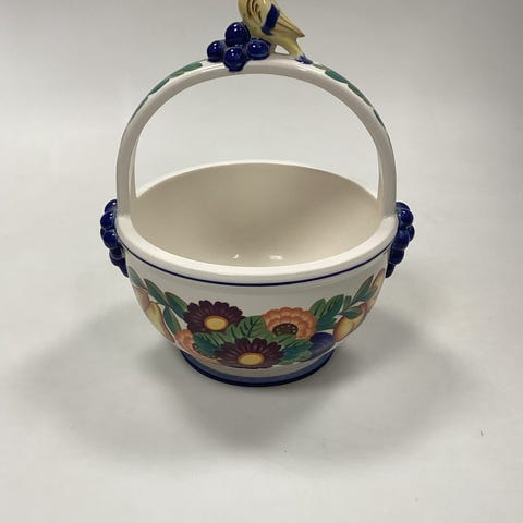 Royal Copenhagen Gylden Sommer Jardiniere No. 690. Gennembrudt frugtskål. Måler H. 11,5 L. 24 B. 19,5cm.