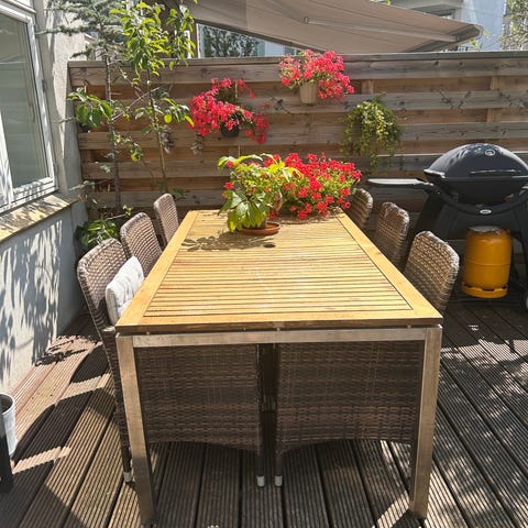 Et sæt af helt særlig kaliber – perfekt til terrassen, haven eller udestuen, hvor du ønsker skandinavisk design, kvalitet og charme i ét. Teaktræet har en smuk glød og er kendt for sin holdbarhed, hvilket gør sættet både praktisk og stilfuldt i mange år frem.