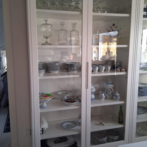 Jeg har desværre ikke noget billede da skabene er pakket ind i beskyttelses plastic efter flytning. Derfor vises billed fra hjemmesiden "logo møbler". Det er 2 ens skabe, samlet spejlvendt så når de står side om side ligner det ét skab. Kan nemt samles omvendt eller sættes hver for sig. Flot stand, kun let slitage på håndtag samt skufferne nederst. Da de er pakket ind er de nemme at transportere uden at ridse. Pris er for begge.