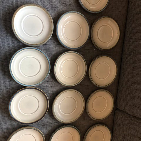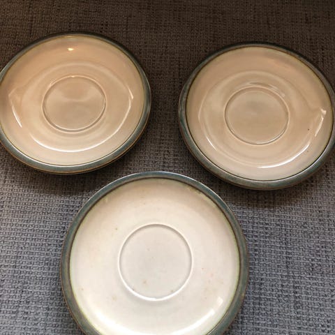 De er ikke i stykker men glasuren er krakeleret. Rydder op og ud.