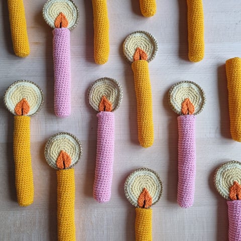 Jeg bruger lang tid på at hækle hvert enkelt lys og betaler skat af fortjenesten. Jeg giver derfor ikke rabat. Ej heller ved køb af flere.