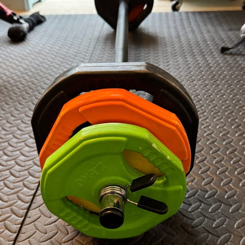 18 Pump stænger med vægt skiver. -bruges ikke mere - står desværre bare og mangler nogle der kan give det kærlighed. Nypris 8000-10000. Kan hentes i København eller 4300 Holbæk