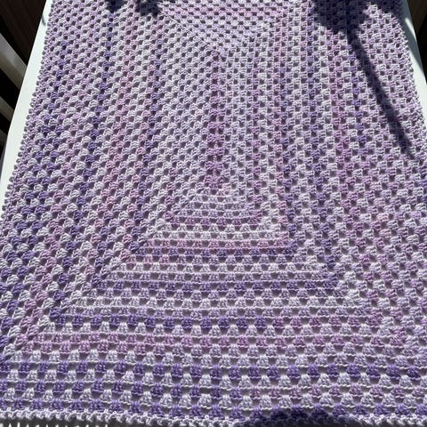 Nyt håndlavet baby-tæppe i de skønneste varme grønne farver. Blødt og varmt. Fra røg -og dyrefrit hjem.