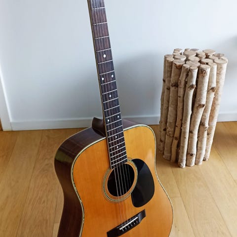 Morris W613N fra 1978. I rigtig god og spilbar stand: lav action, god bridge, gode tuners, ingen 'belly' og gode bånd. Gran dæk, palisander bund og sider. Inklusiv hard case.
