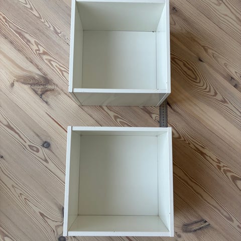 2 smalle plastikreoler i god stand fra ikea.højde 168 cm.bredde 50 og dybde 14 for den smalle .den anden er et par cm dybere.