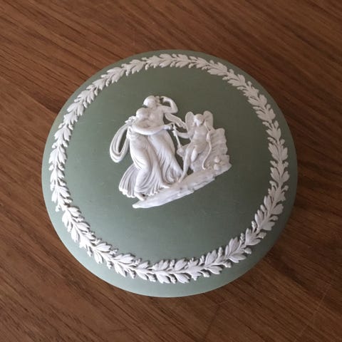 Wedgwood Jasperware knopvase i den klassiske "Wedgwood blue" farve. Højde 12 cm.