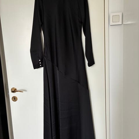 Hellang Neo Noir festkjole i sort blankt stof - aldrig brugt - sælges for 150 kr.