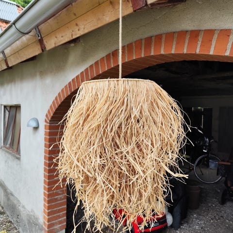 Rigtig fin og elegant pendel loftslampe i naturmateriale flet med “mat” pære som giver dæmpet gulligt lys. Pære medfølger!
