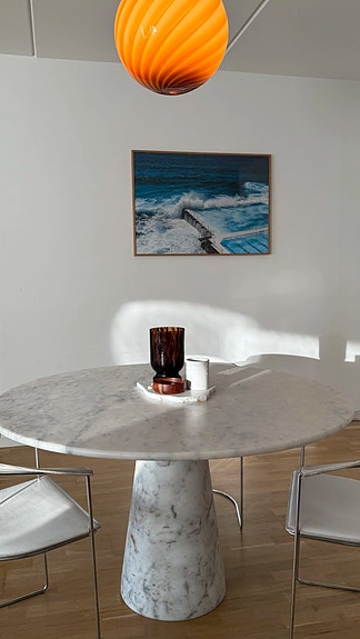 Smukt rektangulært spisebord i 100 % lys travertin. Designet er inspireret af 70’erne og udstråler ro, elegance og tidløs kvalitet.