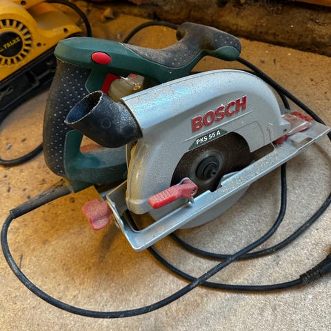 Bosch PKS 66, klinge 190 x 30 mm, fuldt med ved køb af kolonihavehus, jeg har prøvet den, så den fungerer.Jeg modtager gerne seriøse bud.