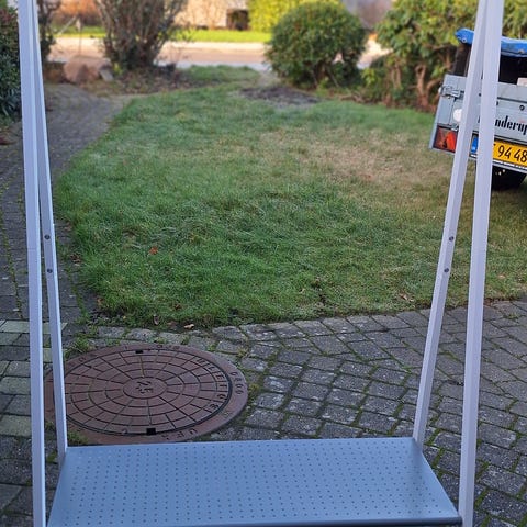 Lækkert tøj- og sko-stativ med hjul af god kvalitet.
