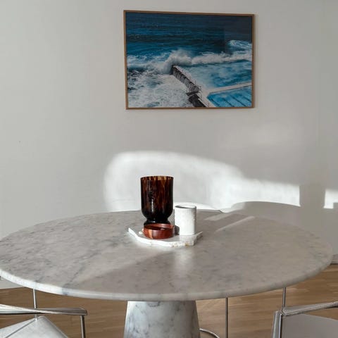 Design: Rund massiv marmorfod + bordplade (leveres i 2 dele)