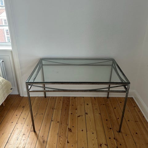 Virkelig smukt bord med stel i smedejern. Massiv træbordplade, malet cremehvid.