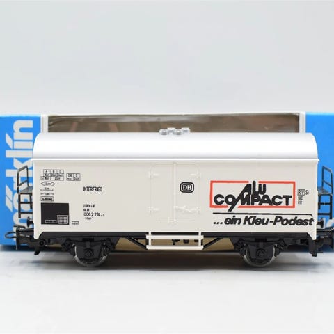 Märklin modeltogvogne med reklame i æske. 99,00 kr. pr. stk.