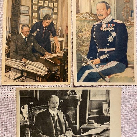 Ubrugt fotokort i bedste kvalitet med kong Chr. X, dronningen og kronprins Frederik (senere Frederik IX), der i forbindelse med genforeningen besøgte Augustenborg d. 13. juli 1920. Her ses de kongelige med byens spidser ved Augustenborg Slot. Til venstre for kongen ses borgmester Petersen. Fotograf var Jens Boisen, Sønderborg. I 50-året for genforeningen bragte Jydske Tidende en artikel om besøget. Artiklen medfølger.